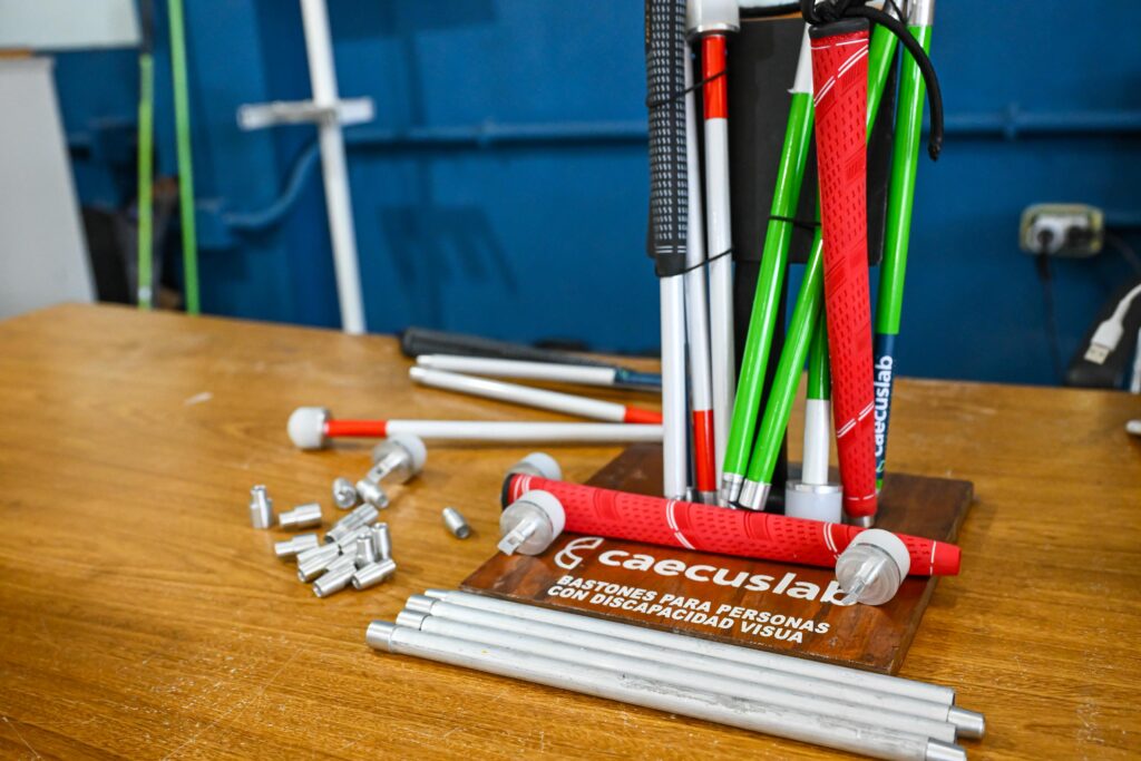 Ambas fundaciones vienen trabajando en conjunto, colaborando por la inclusión laboral. El bastón que produce Caecus Lab fue presentado por Lucas Rodríguez, quien lo adquirió en Canadá y ahora se vuelve de producción nacional.