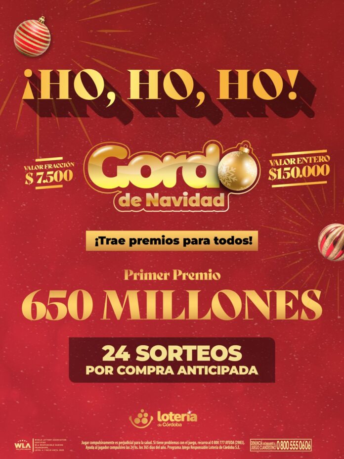 En esta épocas de bolsillos flacos, Lotería quiere que haya muchos cordobeses felices, y por eso ha destinado $650.000.000 que van a salir sí o sí en el sorteo final que se llevará a cabo el próximo 26 de diciembre de 2025.