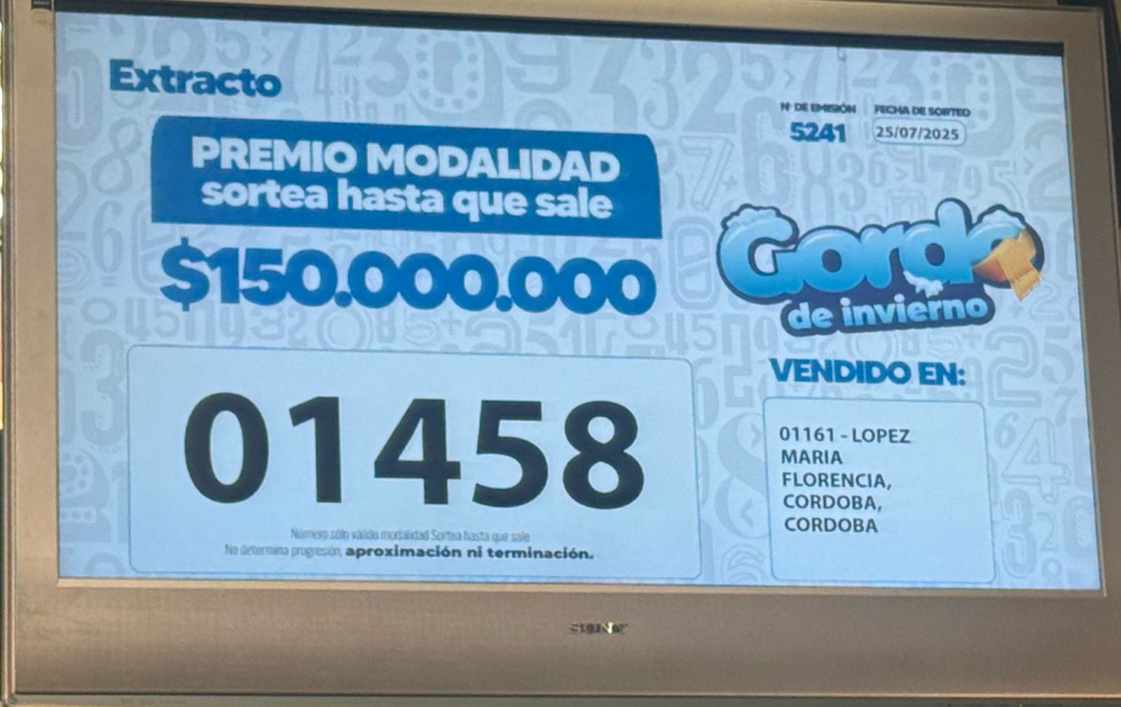 Lotería de Córdoba realizó el sorteo final del Gordo de Invierno con un pozo de $150.000.000 que convirtió en millonario a otro cordobés.